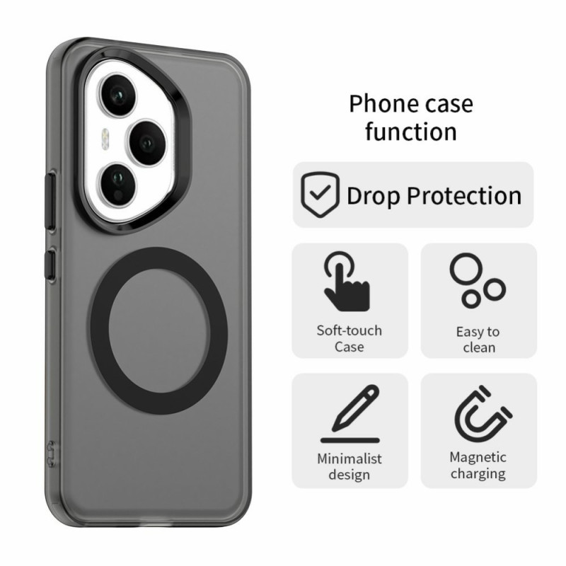 Ontdek onze schokbestendige hybride hoes voor Honor 400 Pro 5G, compatibel met MagSafe draadloos opladen. Hij is gemaakt van eersteklas PC-, TPU- en PET-materialen en biedt volledige bescherming tegen krassen en schokken.