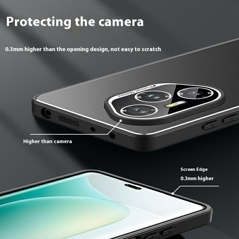 La coque comprend une protection d'objectif intégrée et des bords surélevés pour l'écran et la caméra, assurant une sécurité maximale contre les rayures et les chocs.
