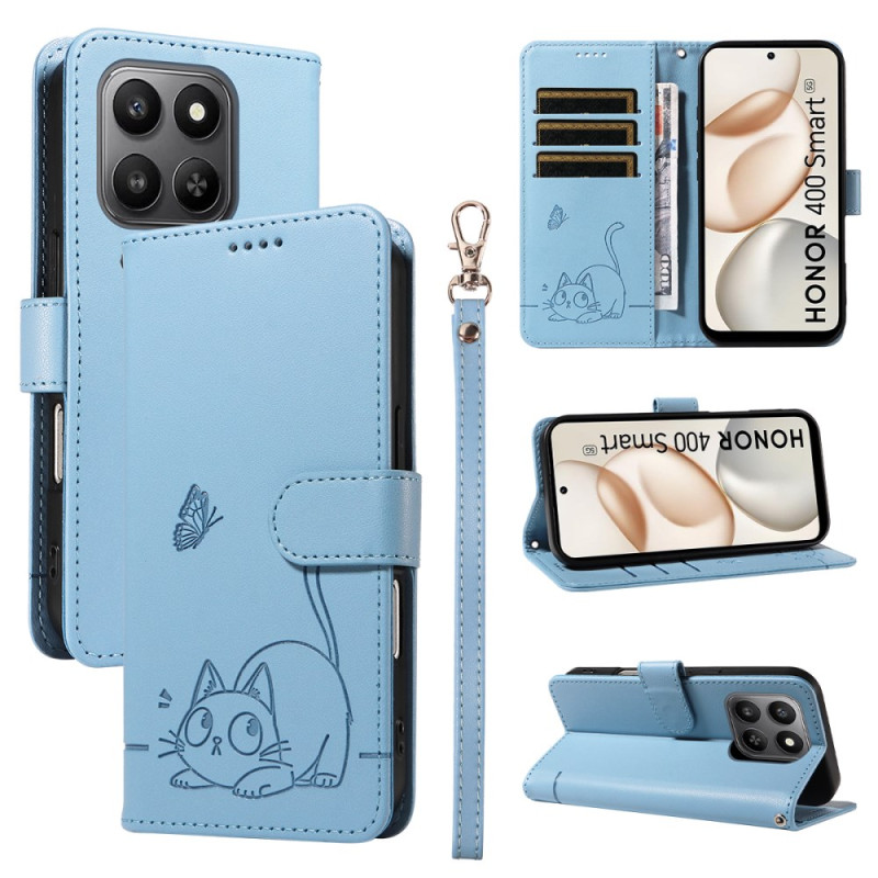 Ontdek onze multifunctionele portemonneehoes voor Honor 400 Smart 4G. Met drie kaartsleuven, een geldvakje en een veilige magnetische sluiting combineert deze case functionaliteit en bescherming. Het elegante ontwerp met gelukskatmotief en afneembare polsband maken het de perfecte accessoire voor je smartphone.