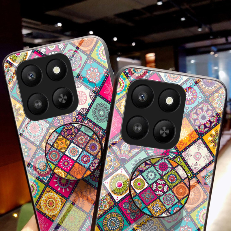 Ontdek onze elegante beschermhoes voor Honor 400 Smart 5G. Met een geïntegreerde standaard, een stijlvol etnisch motief en meerlaagse bescherming combineert het functionaliteit en esthetiek. Het geharde glas en polsbandje bieden optimale bescherming voor je apparaat.