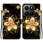 Elegante PU lederen hoes met goudkleurig bloemendesign voor Honor 400 Smart 5G / 4G. Geïntegreerde standaardfunctie, veilige magnetische sluiting, kaartvakjes en portemonneevak. Wordt geleverd met afneembare riem voor handig dragen.