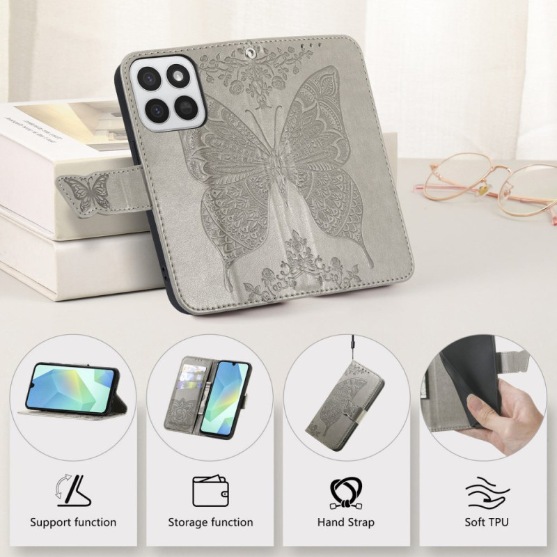 Bescherm je Honor 400 Smart 5G / 4G / X7d 5G / 4G in stijl met deze PU-leren portemonneehoes met een prachtig vlindermotief. Met kaartsleuven, een geldvak, een praktische polsband en een verstelbare steun voor optimaal comfort bij dagelijks gebruik.