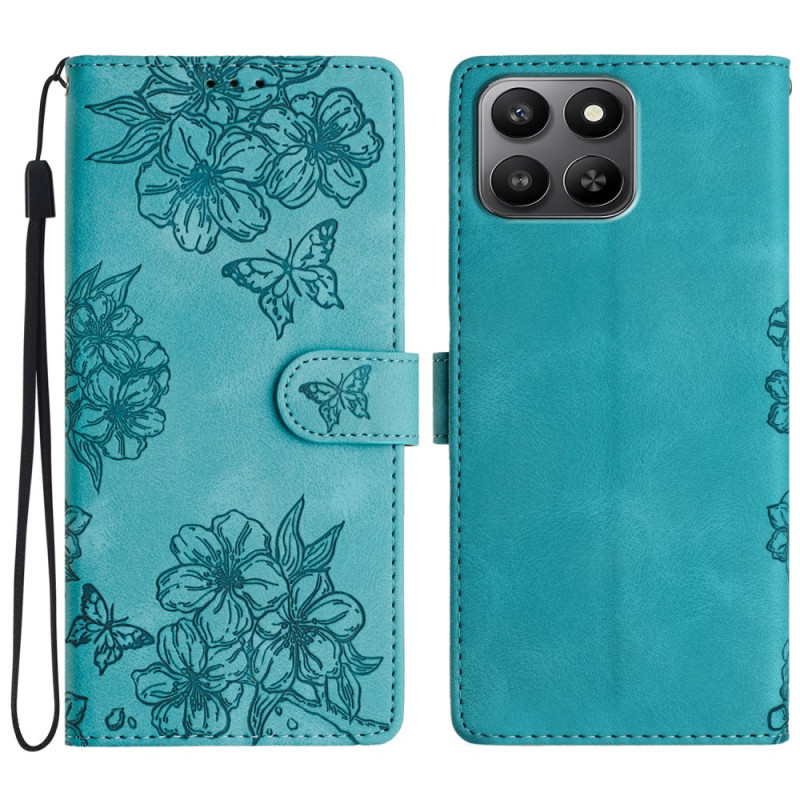 Elegante flap case voor Honor 400 Smart 5G / 4G / X7d 5G / 4G met vlinder- en bloemmotieven. Portemonnee-ontwerp met 3 kaartsleuven, muntzakje en standaardfunctie. Beveiligde magnetische sluiting en polsband inbegrepen voor gemakkelijk dragen...