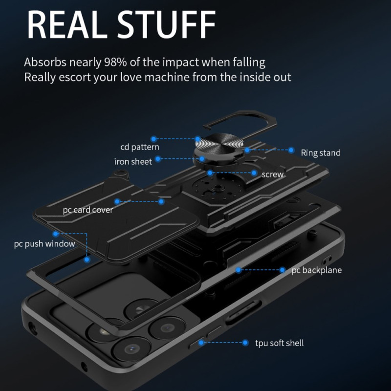 Bescherm je Honor in stijl met deze multifunctionele hoes. Hij is voorzien van een intrekbare metalen kickstand, een magnetische autohouder, een verschuifbare kaarthouder en een innovatieve cameracover voor optimale bescherming.