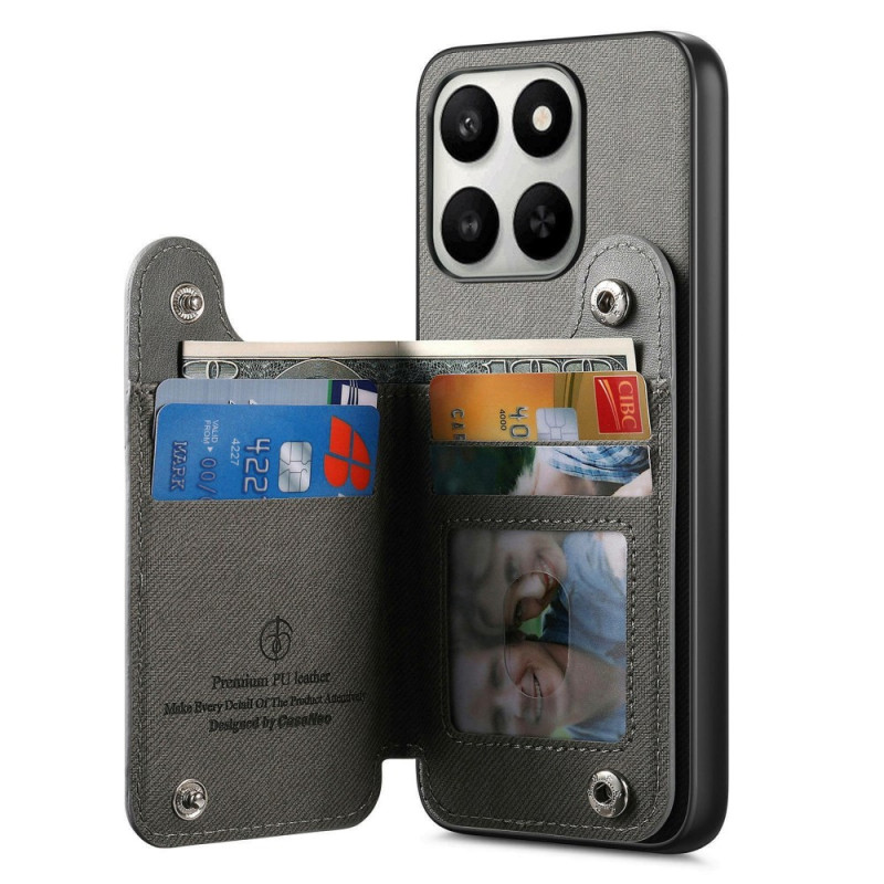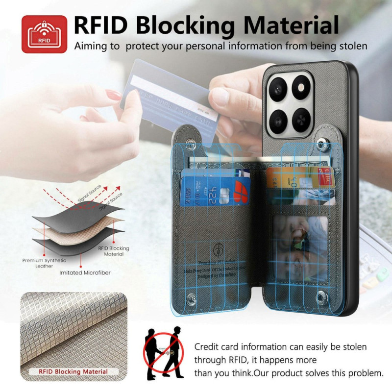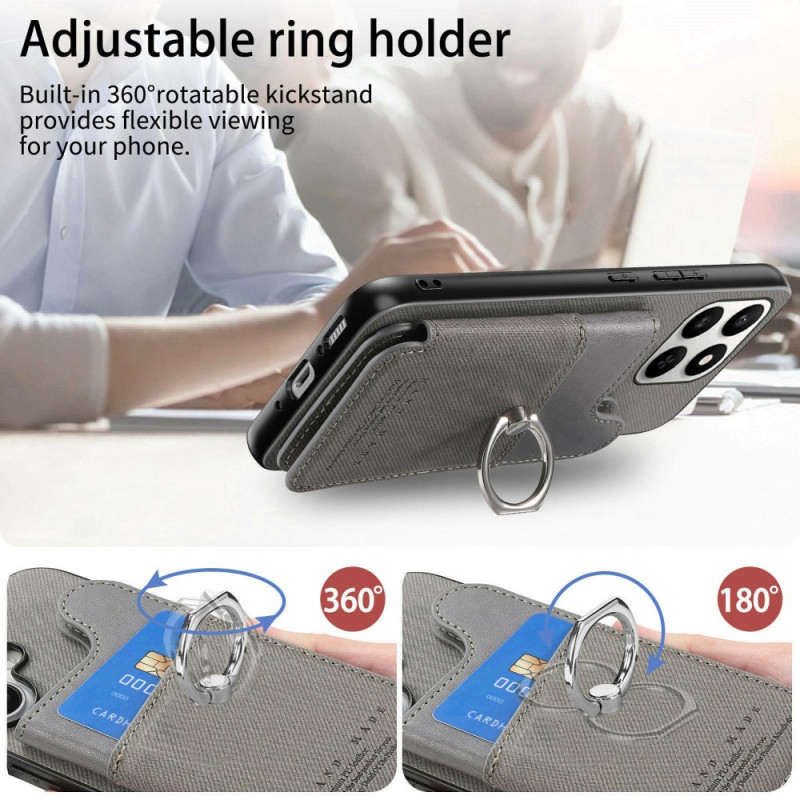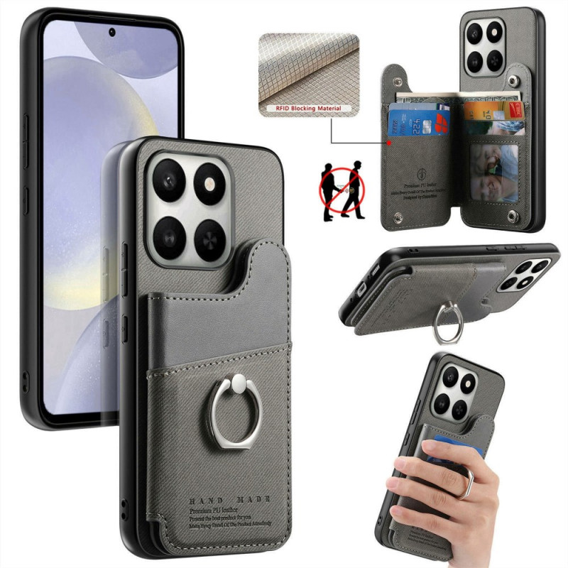 Multifunctionele hoes van leer, TPU en PC voor Honor 400 Smart 5G / 4G / X7d 5G / 4G. Voorzien van RFID-sleuven voor 4 pasjes, verstelbare standaard, 360° draaibare ring en robuuste bescherming. Stijlvol ontwerp met textuur en kliksluiting voor gemakkelijke toegang.