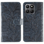 Elegante portemonneehoes met klep en kanten bloemmotief voor uw Honor 400 Smart 5G / X7d 5G / 4G. Verfijnd ontwerp en optimale bescherming, met kaartsleuven, geïntegreerde houder en praktische handriem voor vereenvoudigd dagelijks gebruik.