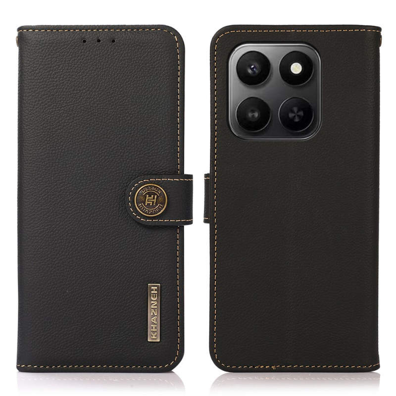 Ontdek de KHAZNEH portemonneehoes van echt rundleer voor de Honor X7d en 400 Smart. Hij combineert elegantie en functionaliteit en biedt RFID-bescherming tegen gegevensdiefstal, een ultrabestendige magnetische sluiting en een praktische houder om je inhoud in alle vrijheid te bekijken.
