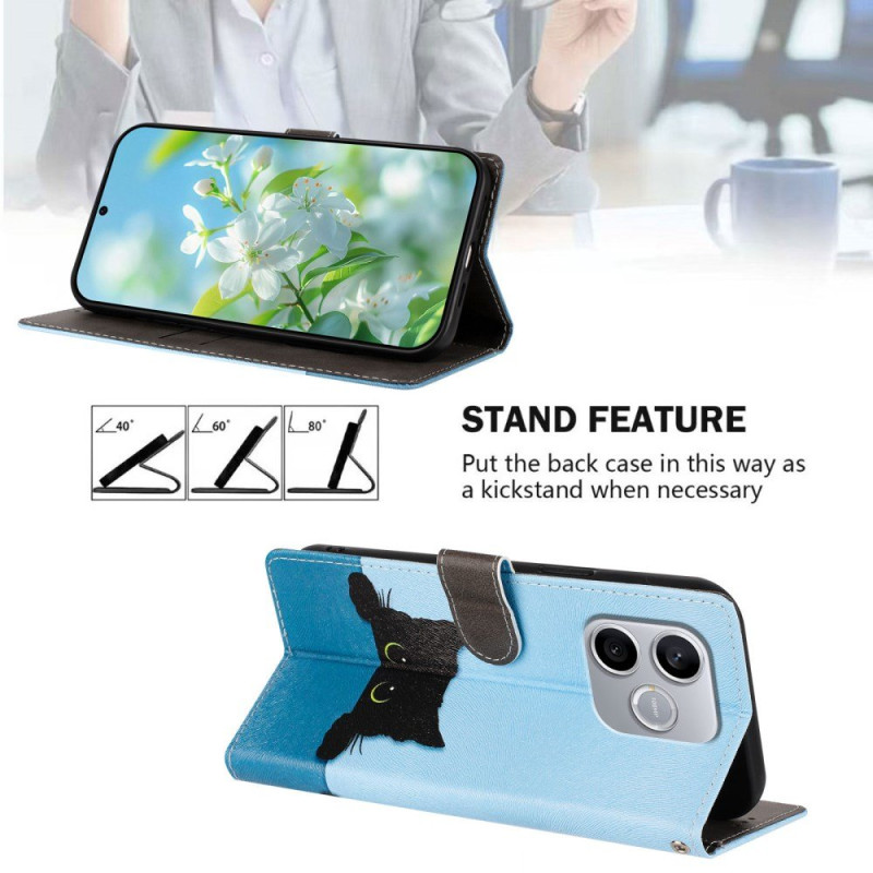 Je zult dol zijn op deze wallet case met het motief van een zwarte kat, die robuuste bescherming en unieke stijl combineert voor je Honor 600 Lite 5G.