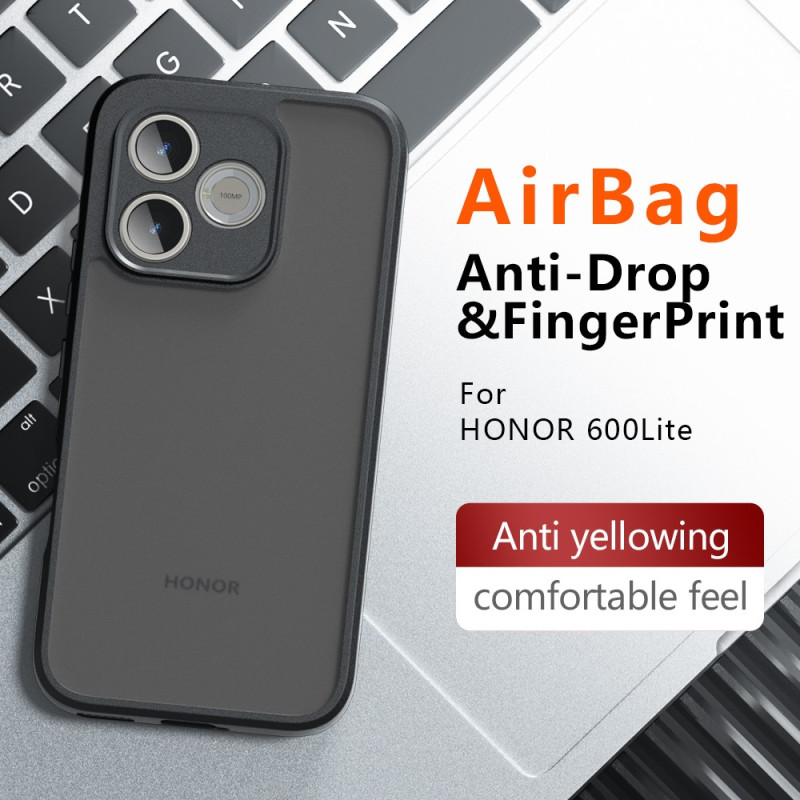 Geef je Honor 600 Lite 5G geavanceerde bescherming met deze transparante zwarte hoes met een modern design.
