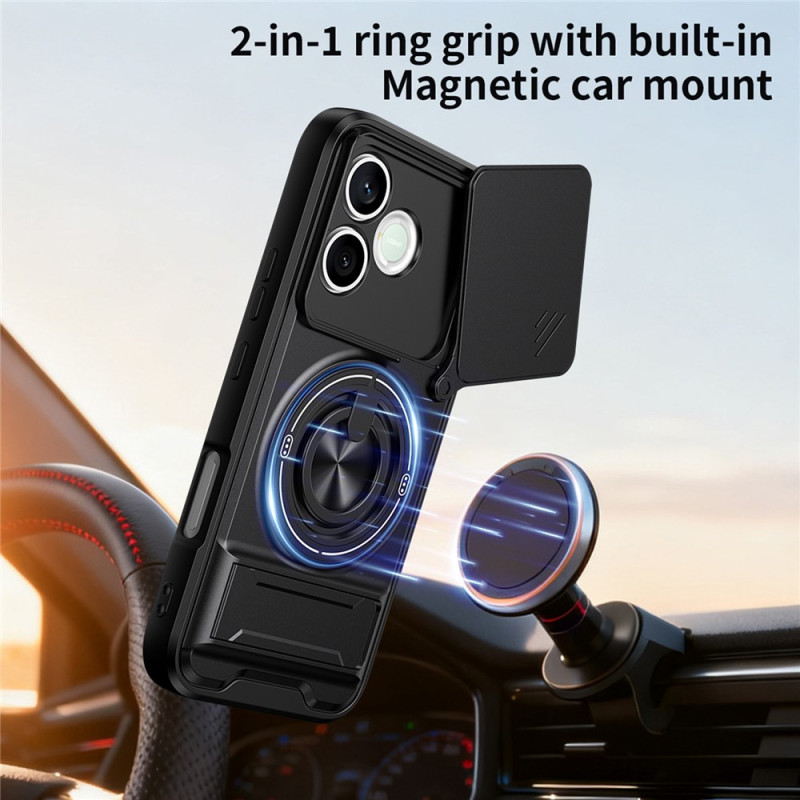De verschuifbare cameradeksel beschermt de lens effectief tegen krassen en stoten.