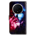 Stijlvolle portemonneehoes met wolfmotief voor Honor Magic 8 Pro 5G. Volledig synthetisch lederen bescherming met verstelbare houder, 3 kaartsleuven, veilige magnetische sluiting en afneembare handriem.