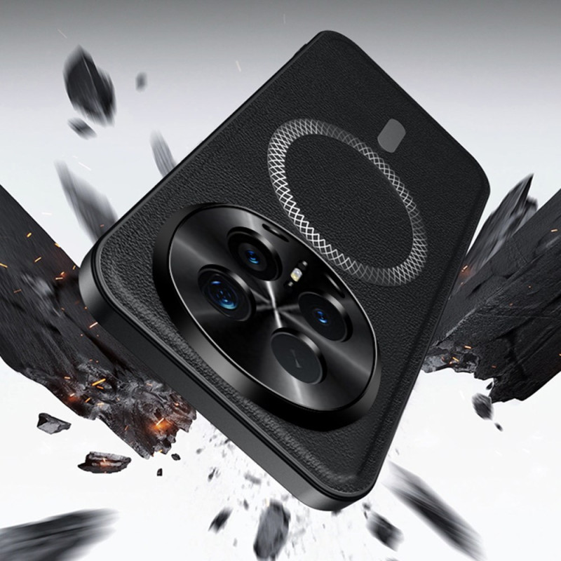 Premium MagSafe-compatibele hoes voor Honor Magic 8 Pro 5G. PU, TPU en PC constructie voor optimale bescherming, schokabsorberend airbag ontwerp, metalen frame voor verhoogde lens en precieze uitsparingen. Onafhankelijke knoppen en antislipranden.