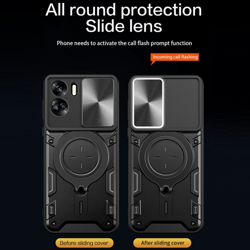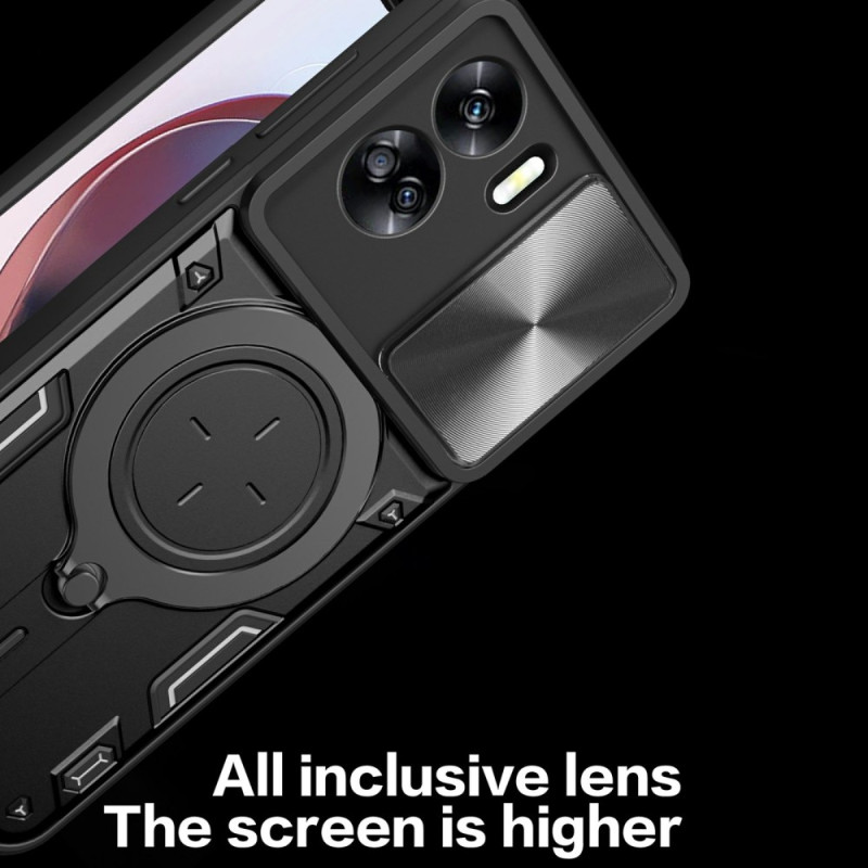 Cette coque pour Honor 90 Lite 5G est dotée d'un couvercle de caméra coulissant et d'un support rotatif.