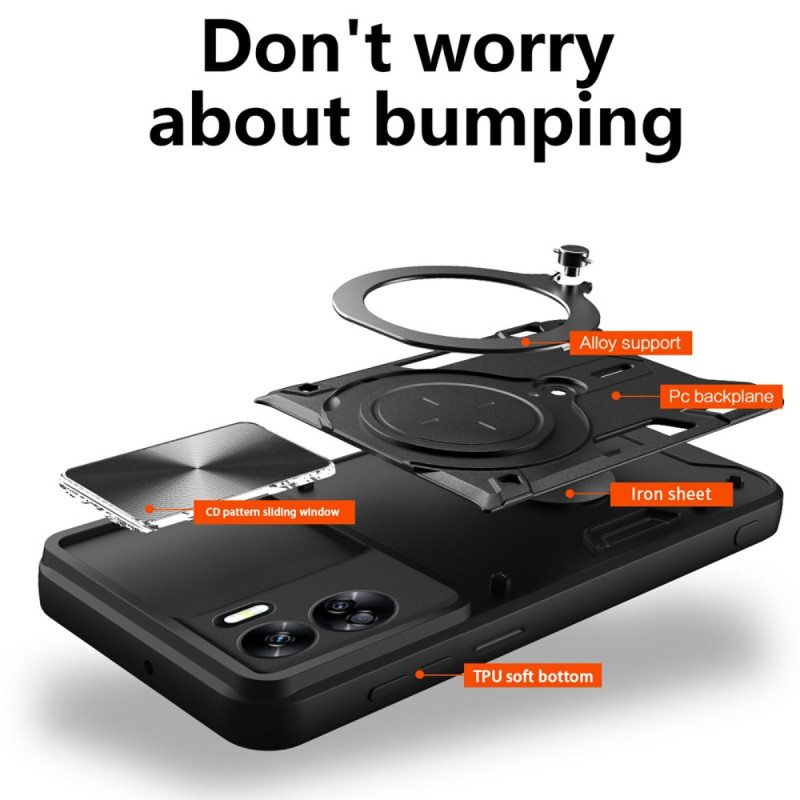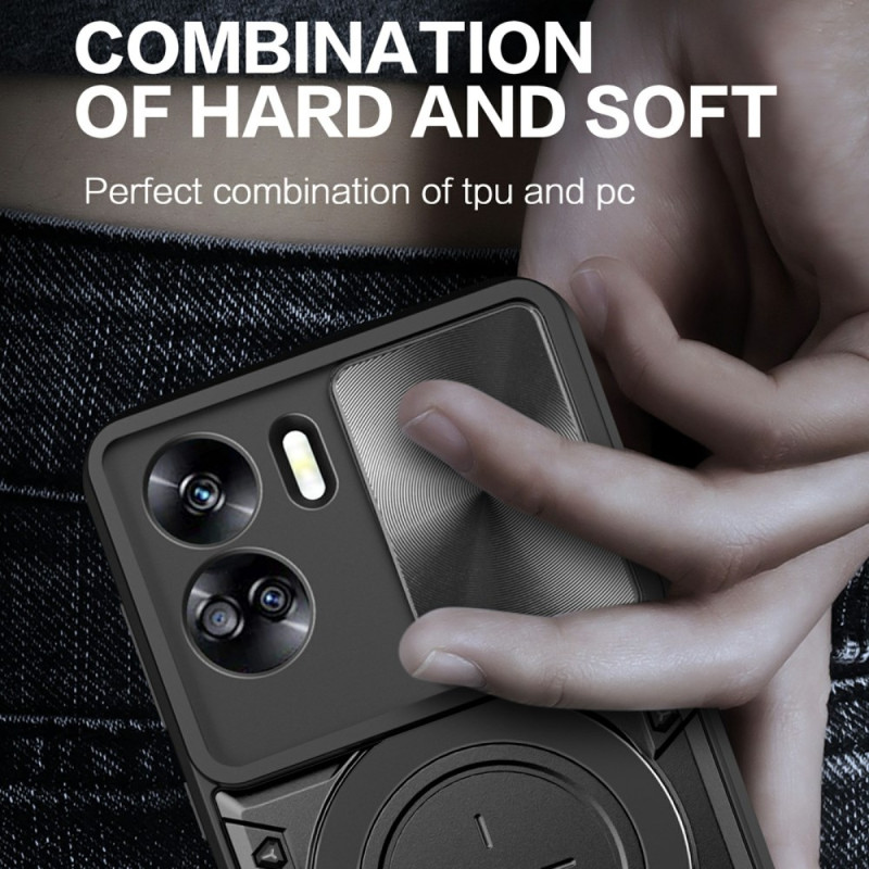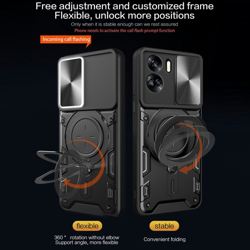 Dit hoesje voor de Honor 90 Lite 5G heeft een verschuifbaar cameradeksel en een draaibare standaard.