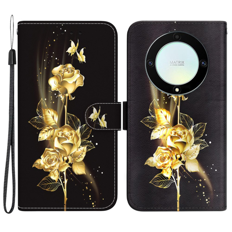 Ontdek onze unieke telefoonhoes voor Honor Magic 5 Lite 5G / X9a die, met zijn kenmerkende gouden vlinder en rozenpatroon, stijlvolle elementen toevoegt aan je apparaat en tegelijkertijd optimale bescherming biedt tegen krassen, stoten en andere dagelijkse schade.