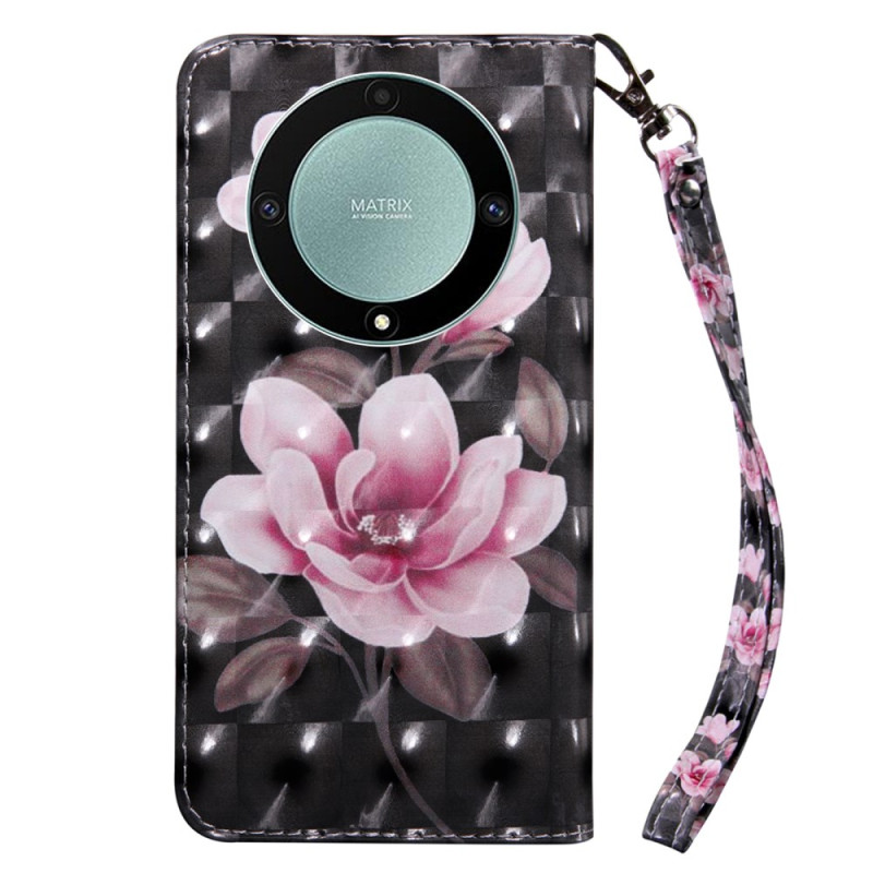 Dit stijlvolle telefoonhoesje voor de Honor Magic 5 Lite 5G / X9a is voorzien van een 3D-roze bloempatroon en bandje.
