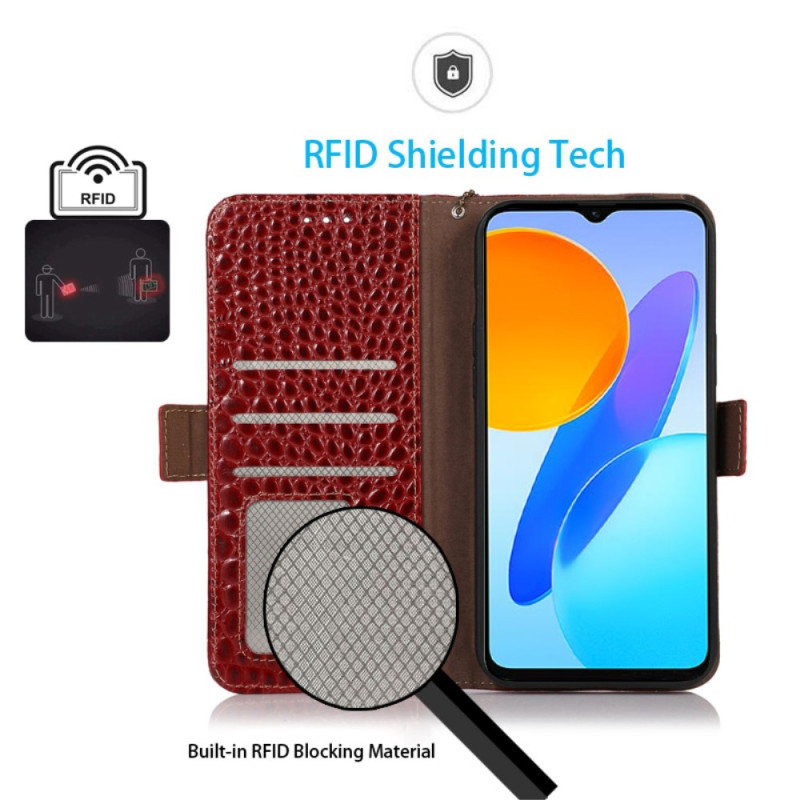 Je Honor Magic 5 Lite 5G / X9a en je pasjes zijn goed beschermd met deze leren hoes (krokodillenstructuur) met RFID-functie.