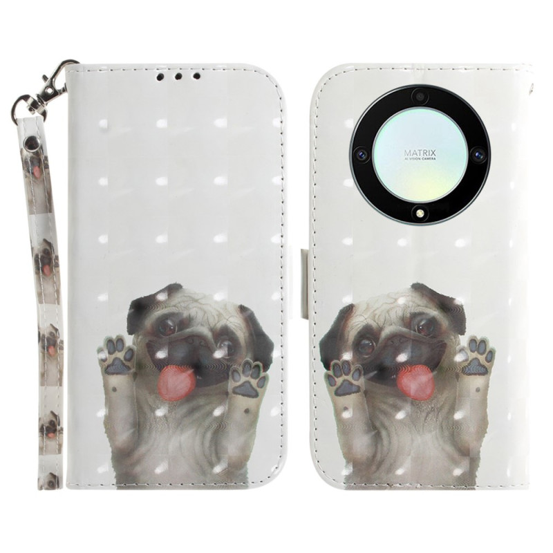 Je Honor Magic 5 Lite / X9a 5G is anders met deze lanyard-hoes met mopshondprint.
