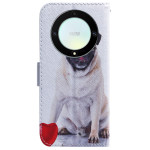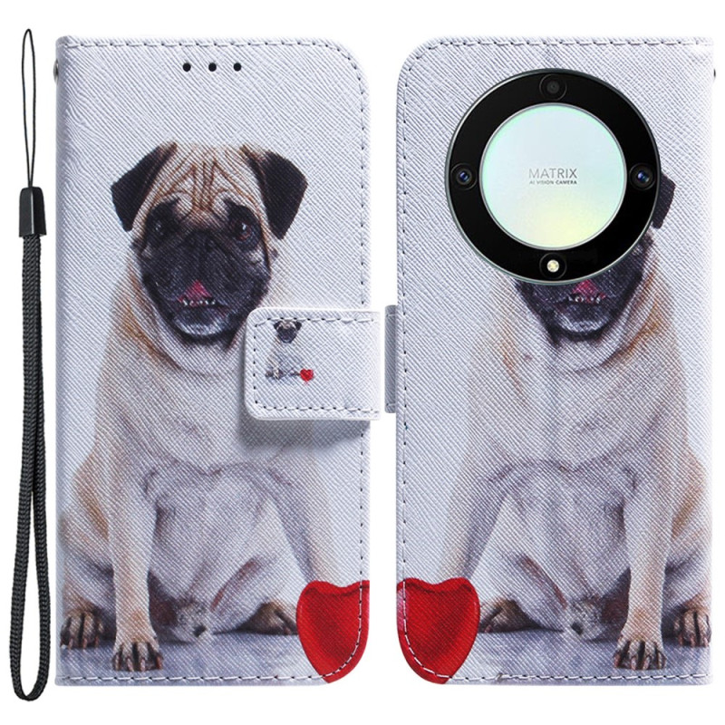 Geef je Honor Magic 5 Lite 5G / X9a een artistiek tintje door hem te beschermen met deze mopshond-hoes in portemonnee-stijl.
