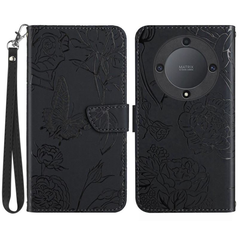 De kunstlederen Butterflies hoes wordt geleverd met een verstelbare draagriem voor de Honor Magic 5 Lite 5G / X9a.