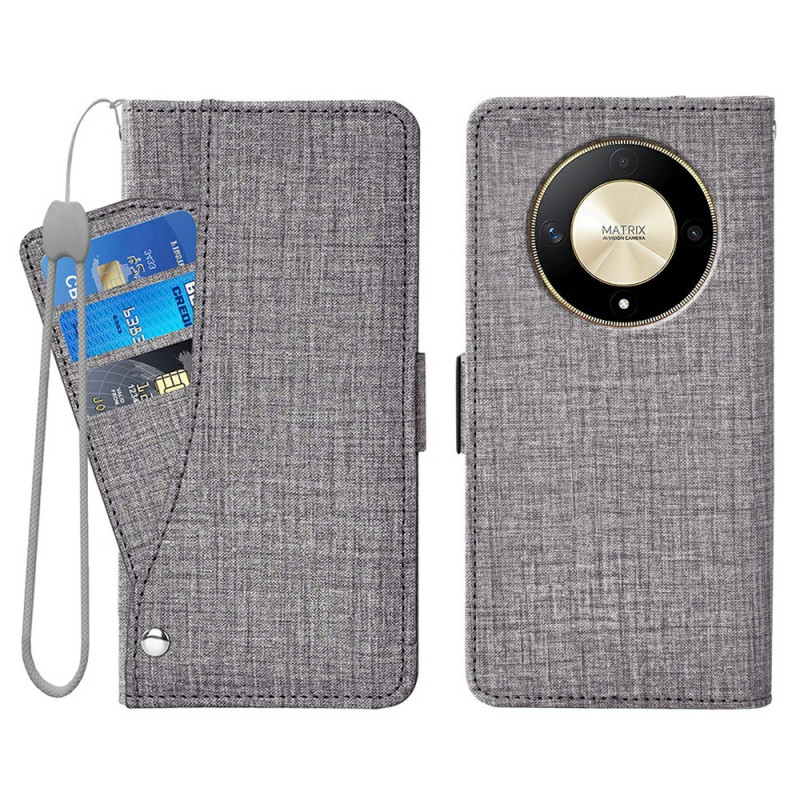 Ontdek deze stijlvolle portemonneehoes met denimtextuur voor je Honor Magic 6 Lite / X9b. Met 3 kaartsleuven, een geldvakje en een draaibare externe kaarthouder combineert hij stijl en functionaliteit.