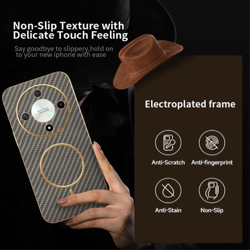 Bescherm je Honor Magic 6 Lite / X9b met deze elegante TPU hoes met koolstofvezeltextuur. Hoogwaardige afwerking met elektrolyse, bestand tegen vingerafdrukken en compatibel met magnetische opladers voor optimale bescherming.