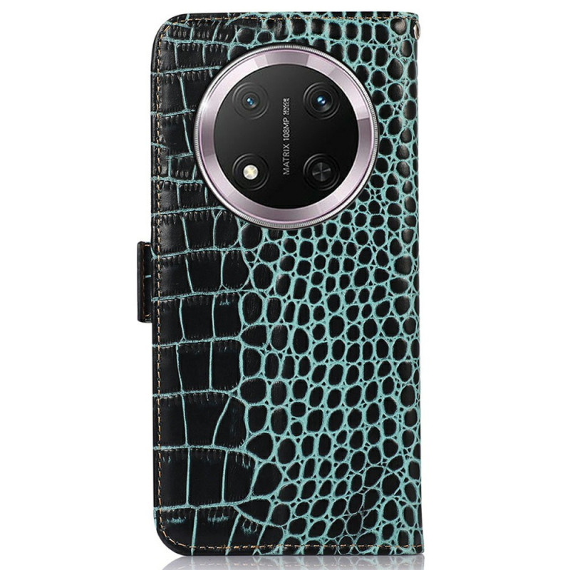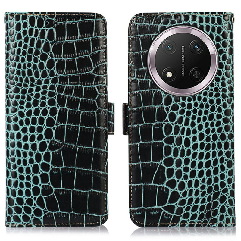 Ontdek onze echt lederen hoes voor Honor Magic 7 Lite / X9c. Hij heeft een stijlvolle krokodillenstructuur en biedt volledige bescherming met zijn kaartsleuven, standaardfunctie en RFID-blokkeringstechnologie.