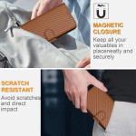 Geniet van een groot aantal praktische functies, waaronder kaart- en ticketsleuven, een verstelbare standaard voor handsfree kijken en een veilige magnetische sluiting.