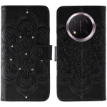 Bescherm je Honor Magic 7 Lite / X9c in stijl met dit geraffineerde etui met een bedrukt mandala-motief en fonkelende strassteentjes. Met vakjes voor pasjes en geld, een standaardfunctie en een praktische handriem combineert hij stijl met alledaagse functionaliteit.
