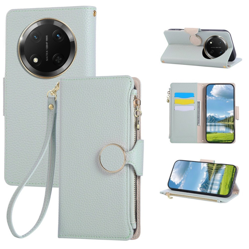 Multifunctionele portemonneehoes met ritssluiting voor Honor Magic 7 Lite / X9c. Elegant ontwerp van PU leer met schokbestendig TPU hoesje , 3 kaartsleuven, ritsvak aan de zijkant en afneembare handriem. Geïntegreerde standaardfunctie.
