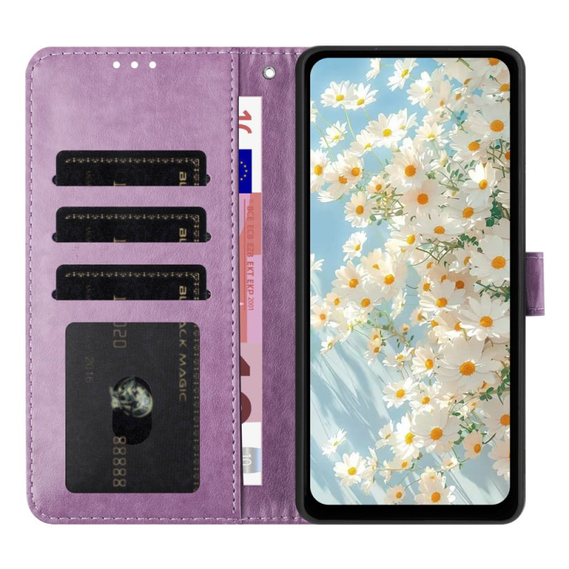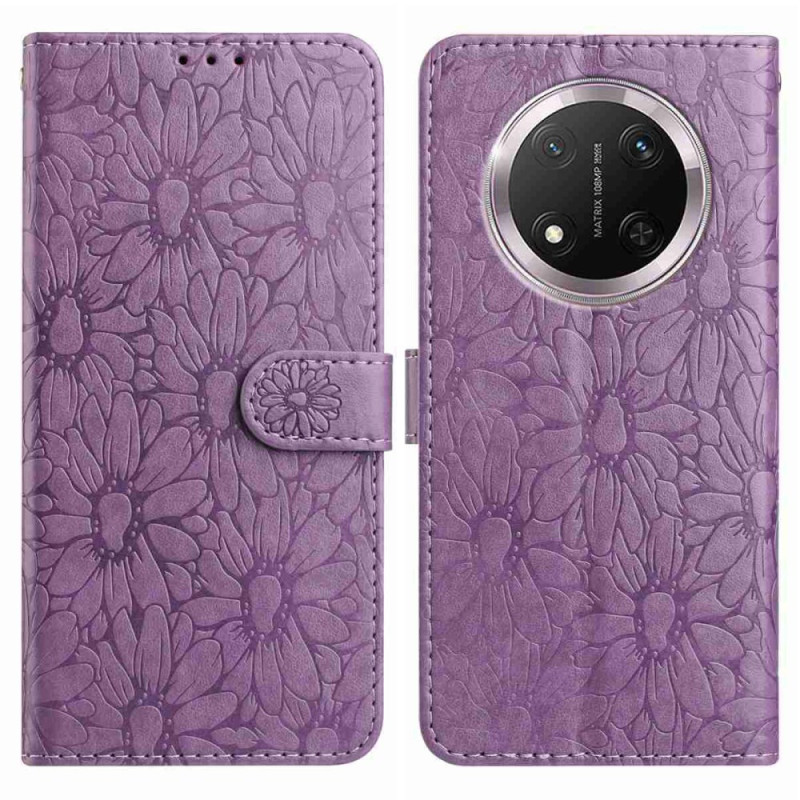Elegante portemonneehoes met margrietmotief in reliëf voor je Honor Magic 7 Lite / X9c. Met 3 kaartsleuven en 1 notitievak combineert het stijl en functionaliteit. Inclusief geïntegreerde handsfree houder en polsbandje voor eenvoudig dragen.