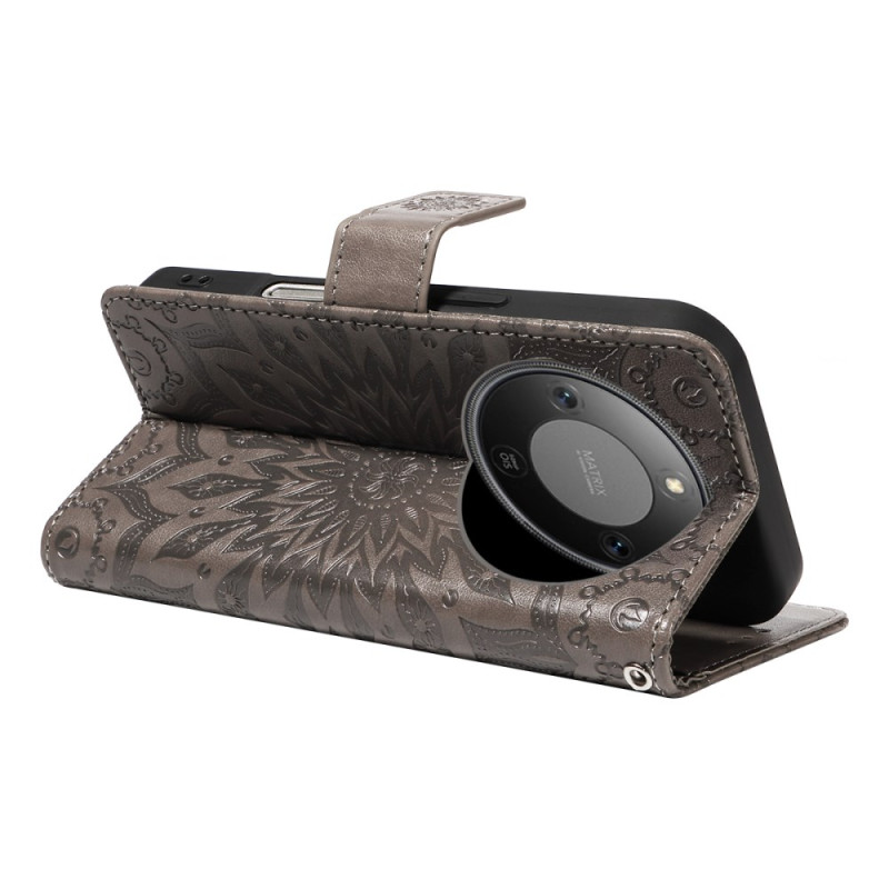 Stijlvolle portemonneehoes van eersteklas PU-leer met 3D-geprint zonnebloemmotief. Voorzien van twee kaartsleuven, een zijvak, handsfree functie en een praktische handriem voor complete, stijlvolle bescherming.
