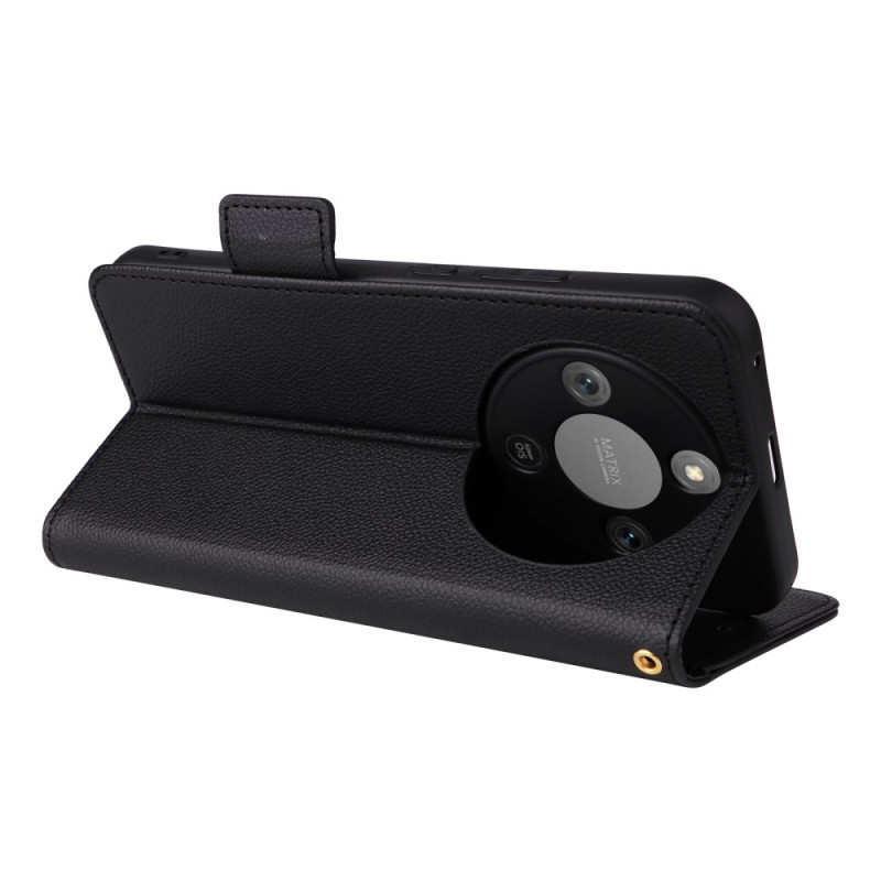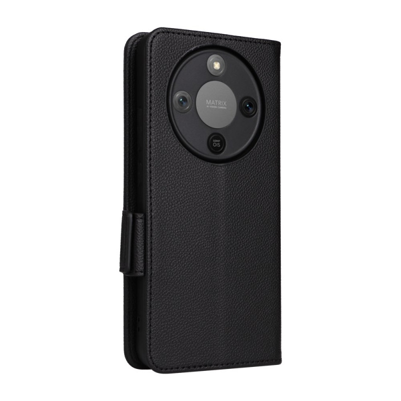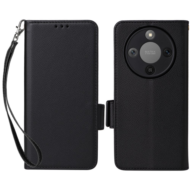 Elegante portemonneehoes van PU leer met lychee textuur voor Honor Magic 8 Lite. Voorzien van meerdere kaartsleuven, handsfree ondersteuningsfunctie en veilige magnetische sluiting. Wordt geleverd met een praktische handriem.
