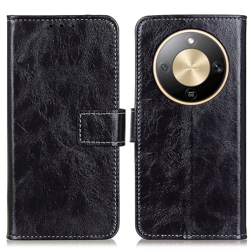 Elegante portemonneehoes met vintage nerfstructuur voor je Honor Magic 8 Lite 5G. Multifunctioneel ontwerp met kaarthouder, ticketvakje, opvouwbare standaard en veilige magnetische sluiting.