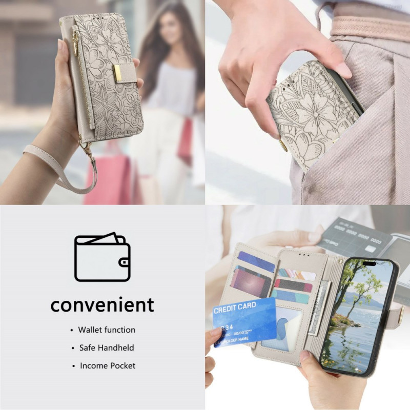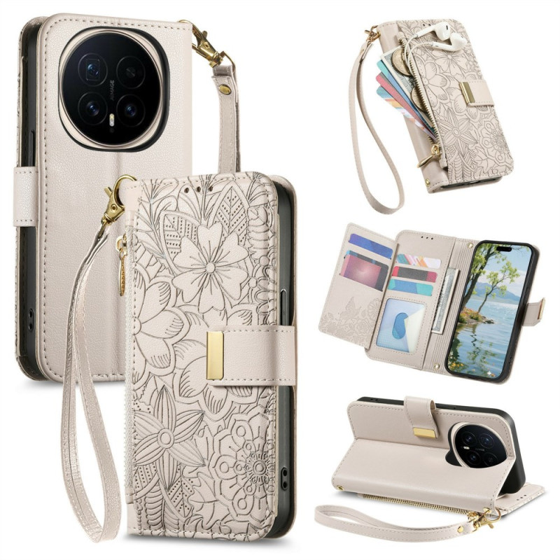 Elegante portemonneehoes voor Honor Magic 8 Pro met verfijnde bloemmotieven. Voorzien van meerdere kaartsleuven, veilig ritsvak en afneembare polsband. Geïntegreerde standaardfunctie voor handsfree...
