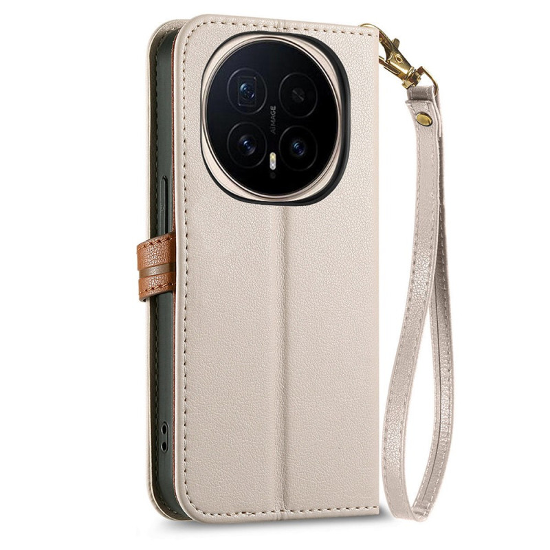Étui élégant en cuir PU et TPU pour Honor Magic 8 Pro 5G. Fermoir magnétique en forme de feuille, fonction support intégrée, 3 emplacements cartes et 1 poche billets. Poche zippée extérieure sécurisée et dragonne amovible pour un transport facile.