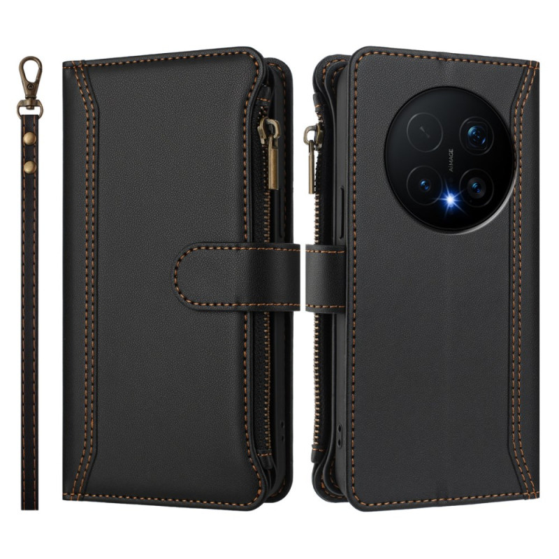 Multifunctionele portemonneehoes voor Honor Magic 8 Pro 5G met 9 kaartsleuven, ritsvak, geïntegreerde standaard en praktische handriem. Volledige bescherming en alledaagse elegantie voor je smartphone.
