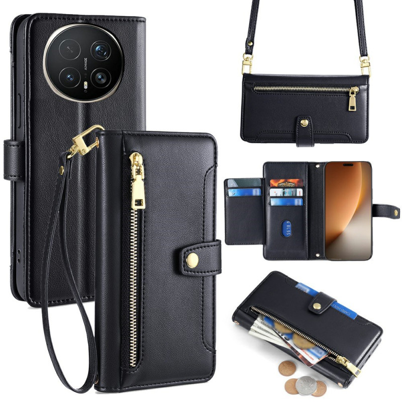 Gestructureerd PU lederen multifunctionele portemonnee hoesje voor Honor Magic 8 Pro 5G. Dubbellaagse stootbescherming, 6 kaartsleuven, muntzakje met rits, geïntegreerde standaard en afneembare bandjes voor handsfree dagelijks gebruik.