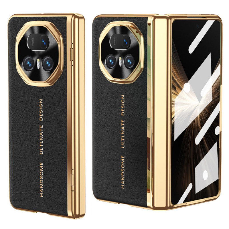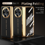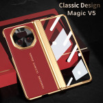 Ontdek onze luxe beschermhoes voor Honor Magic V5 5G. De combinatie van getextureerd PU leer en gegalvaniseerd PC biedt volledige bescherming met een elegant design. Geniet van een verbeterde bescherming van de camera, een geïntegreerde voorklep van gehard glas en een 180° vouwontwerp.