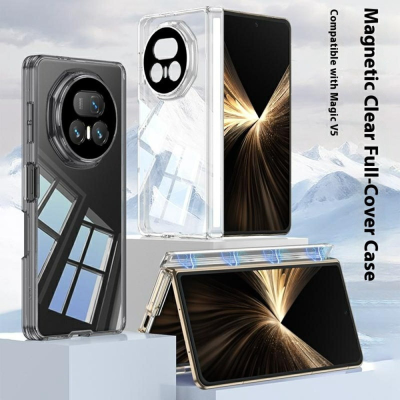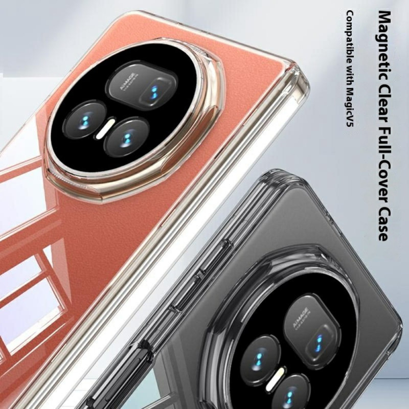 Ontdek onze volledige beschermhoes voor Honor Magic V5 5G. Het is gemaakt van duurzaam TPU en biedt volledige bescherming tegen vallen en krassen, terwijl de oorspronkelijke esthetiek van je apparaat behouden blijft. Het magnetische scharnierontwerp zorgt voor een perfecte pasvorm en beschermt het vouwmechanisme.