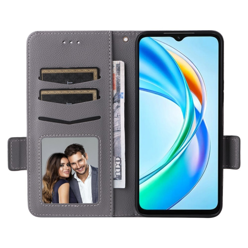 Découvrez notre étui portefeuille élégant pour Honor X5b / X5b Plus. Texture litchi sophistiquée, support mains libres intégré, fermeture magnétique et dragonne pratique. Rangez cartes et espèces en toute sécurité tout en protégeant votre téléphone au quotidien.