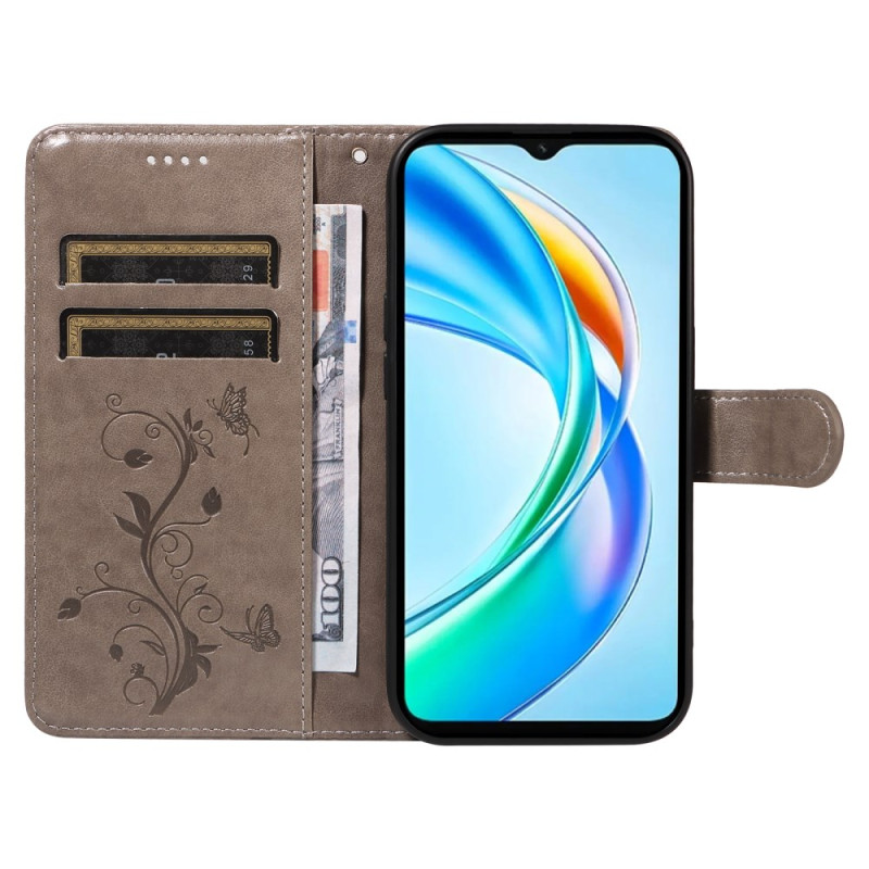 Protégez votre Honor X5b / X5b Plus avec élégance grâce à cet étui portefeuille en cuir PU premium. Doté d'un magnifique motif papillon et floral, il combine style et fonctionnalité avec ses emplacements pour cartes, compartiment latéral et fonction support.