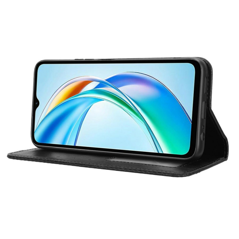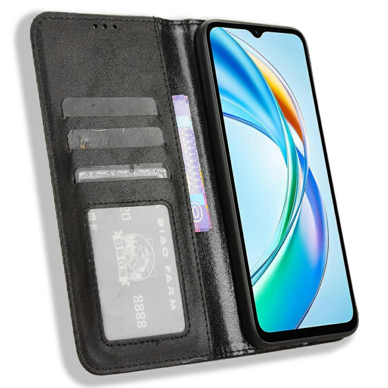 Étui portefeuille élégant avec texture rétro pour Honor X5b Plus / X5b. Doté de multiples emplacements pour cartes, d'un support ajustable et d'une fermeture magnétique automatique. Protection intégrale contre les chocs et rayures tout en gardant vos essentiels à portée de main.