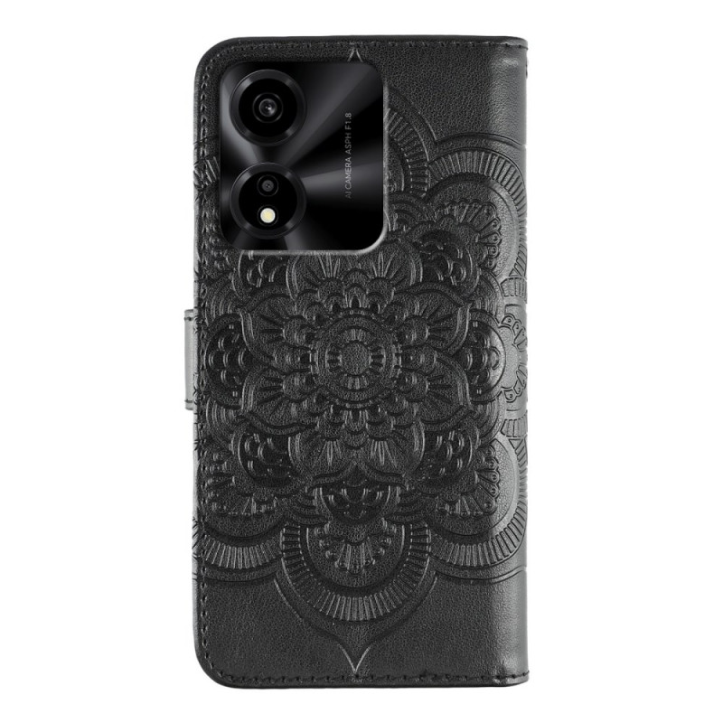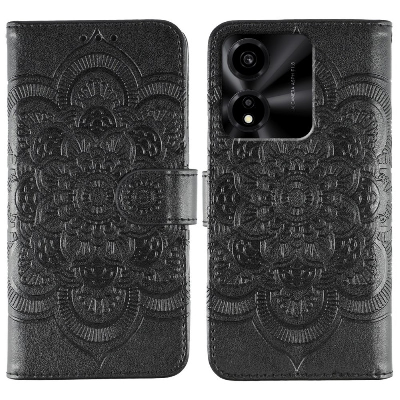 PU lederen portemonnee hoesje met bedrukt mandala motief voor Honor X5c Plus. Ontworpen met elegantie en functionaliteit in het achterhoofd, biedt het robuuste bescherming en unieke stijl. Met kaartsleuven, een notitievakje en een standaardfunctie is het de perfecte oplossing om praktisch en esthetisch te combineren.
