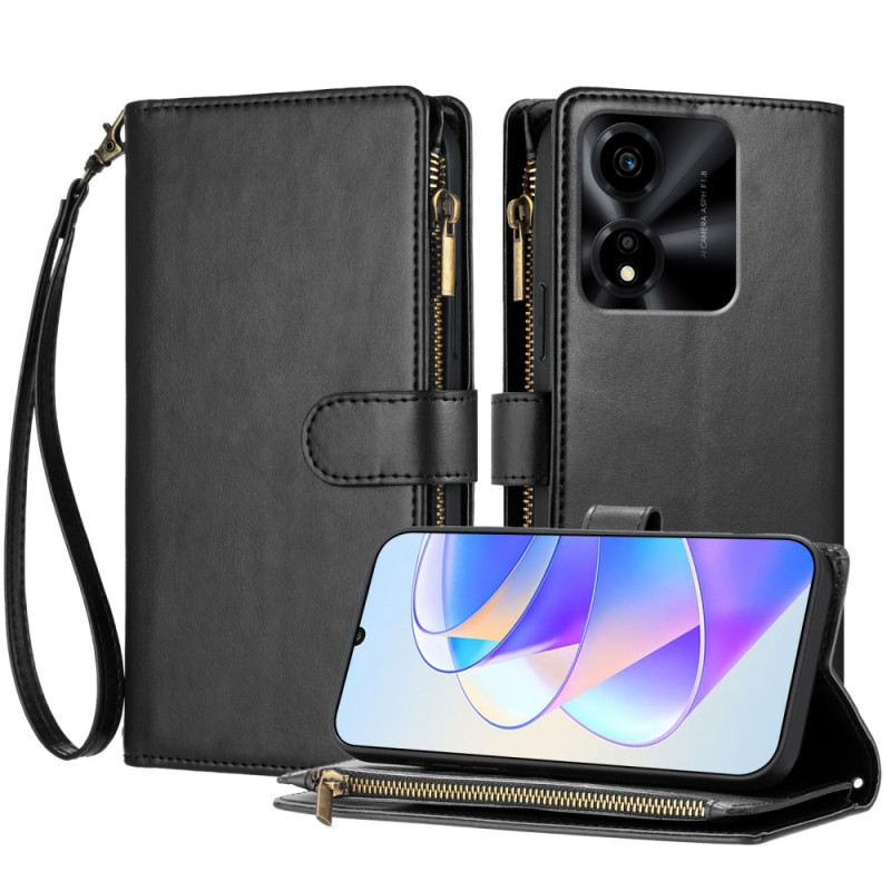 Ontdek onze leren portemonneehoes voor de Honor X5c Plus. Met zijn elegante, functionele ontwerp biedt hij optimale bescherming tegen stoten en stoten, praktische opbergruimte voor je pasjes en geld, en een standaardfunctie voor handsfree kijken. De magnetische sluiting en afneembare handriem voegen praktische bruikbaarheid en veiligheid toe aan je dagelijkse gebruik.