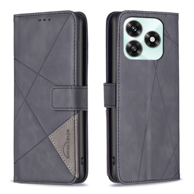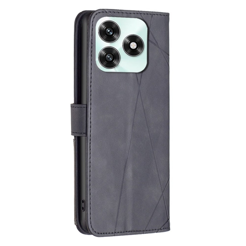 Étui portefeuille élégant en cuir PU premium pour Honor X5c Plus 4G. Design géométrique moderne avec 3 emplacements pour cartes, compartiment à billets et support pliable intégré. Protection complète contre les chocs et rayures.