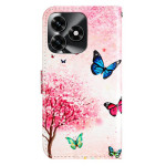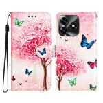 Elegant portemonnee hoesje met kersenpatroon voor Honor X5c Plus. Volledige bescherming, 3 kaartsleuven, multi-angle ondersteuningsfunctie en veilige magnetische sluiting. Inclusief een afneembare handriem voor handig dagelijks dragen.