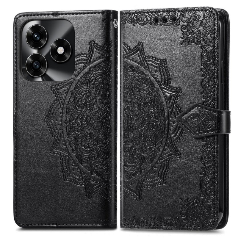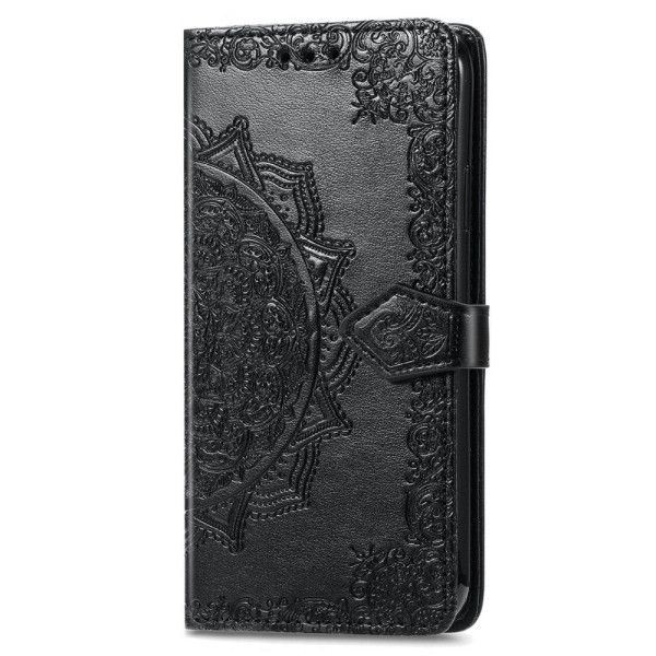 Elegante portemonneehoes van PU-leer met mandalamotief in reliëf voor Honor X5c Plus 4G. Praktisch ontwerp met 3 kaartsleuven, ticketvakje, geïntegreerde handsfree houder en veilige magneetsluiting. Optimale bescherming met verhoogde rand.