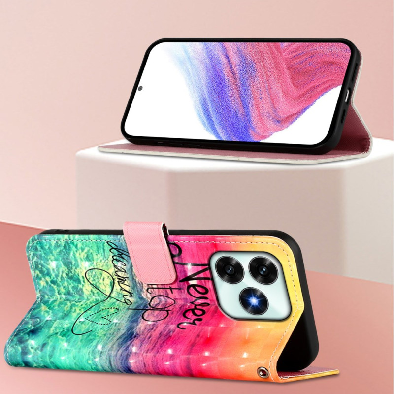 Bescherm uw Honor X5c Plus 4G in stijl met deze multifunctionele portemonneehoes. Het inspirerende "Never Stop Dreaming"-ontwerp combineert stijl en functionaliteit met 3 kaartsleuven, een notitievakje en een houder.