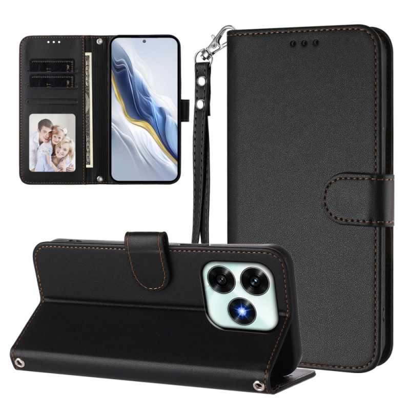 Elegante lederen portemonnee hoes voor Honor X5c die volledige bescherming biedt. Met 3 kaartsleuven, een notitievak, handsfree ondersteuning en een praktische handriem. Geschikt voor draadloos opladen.